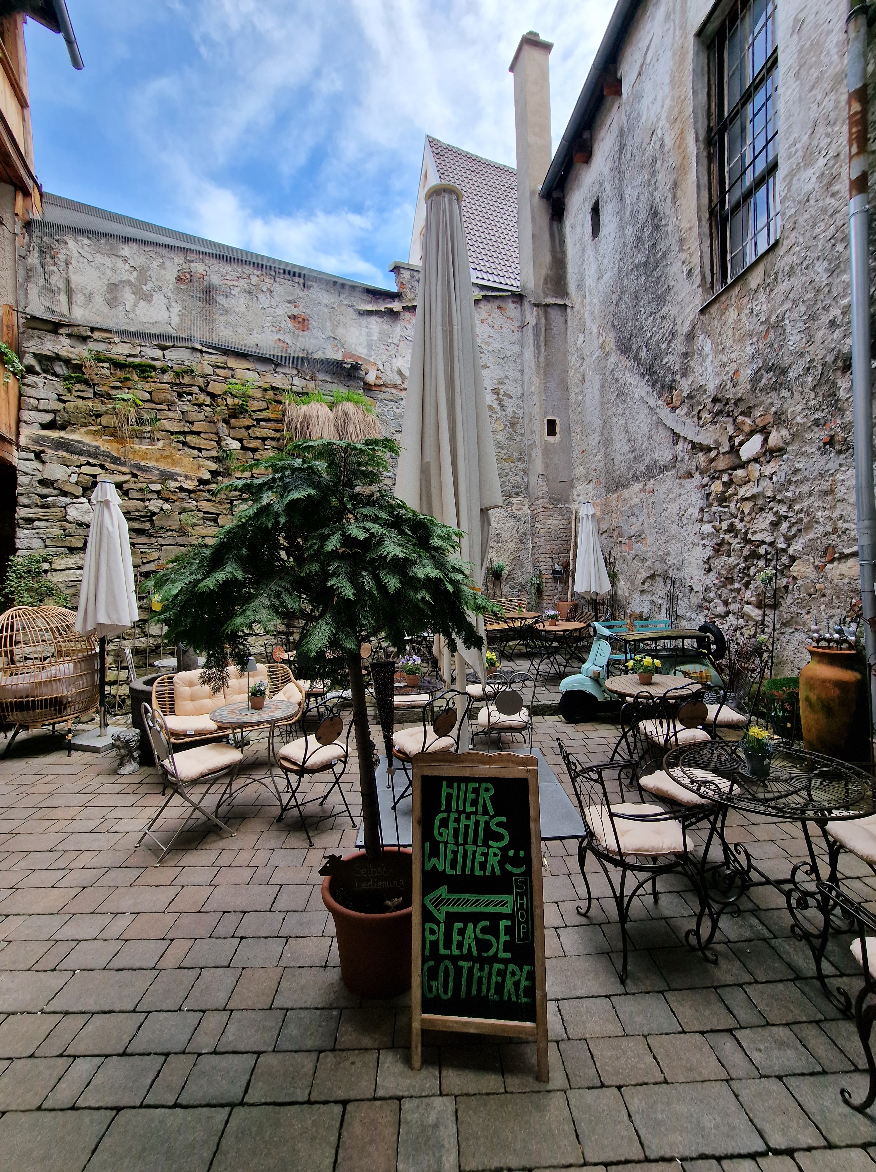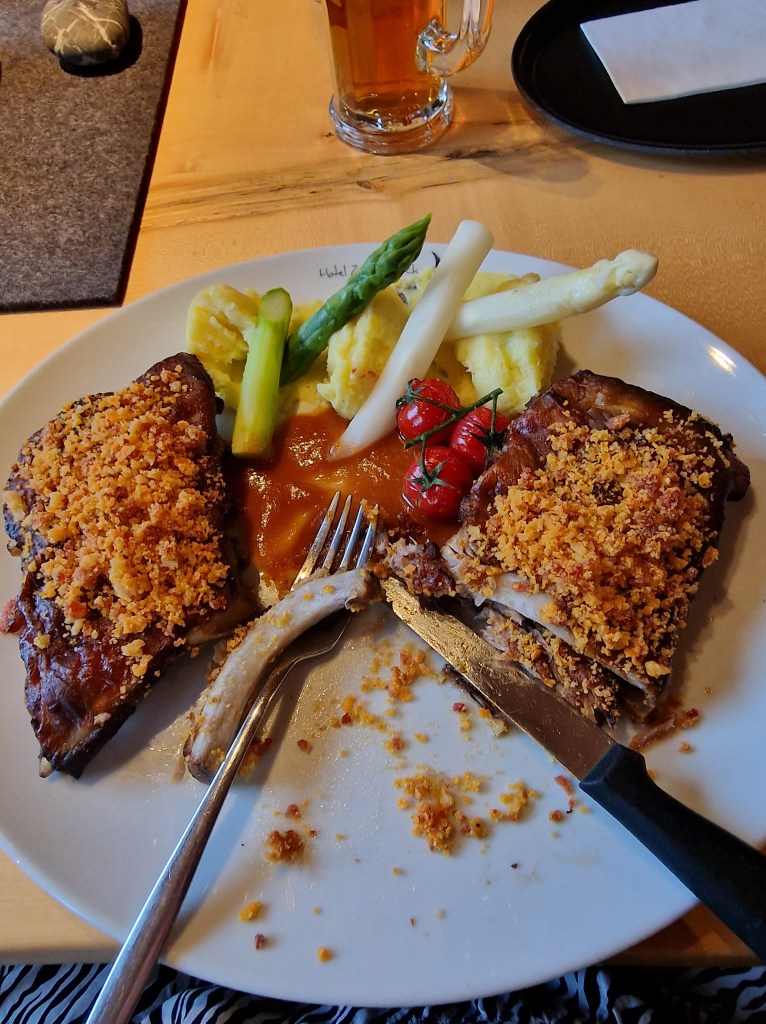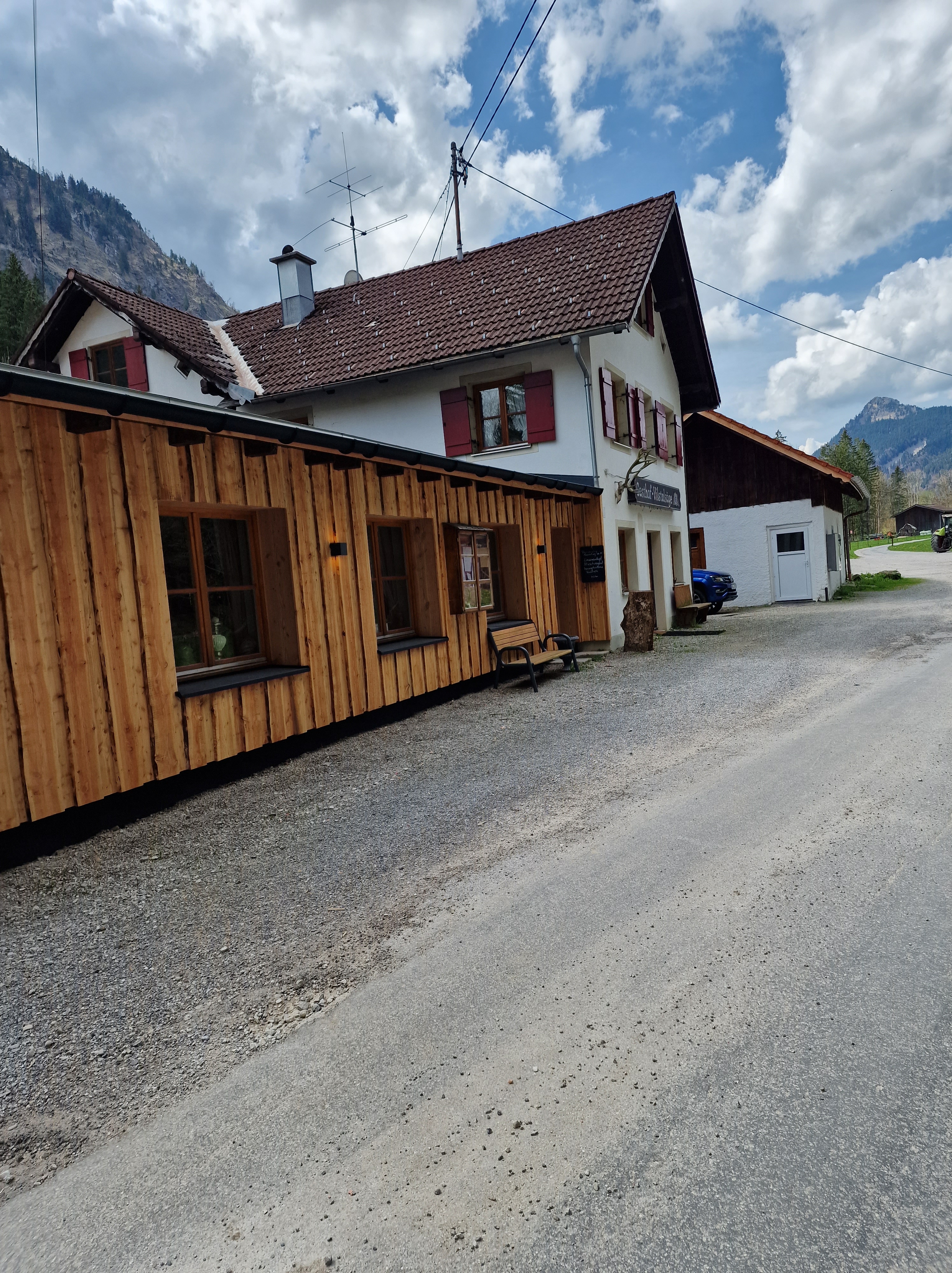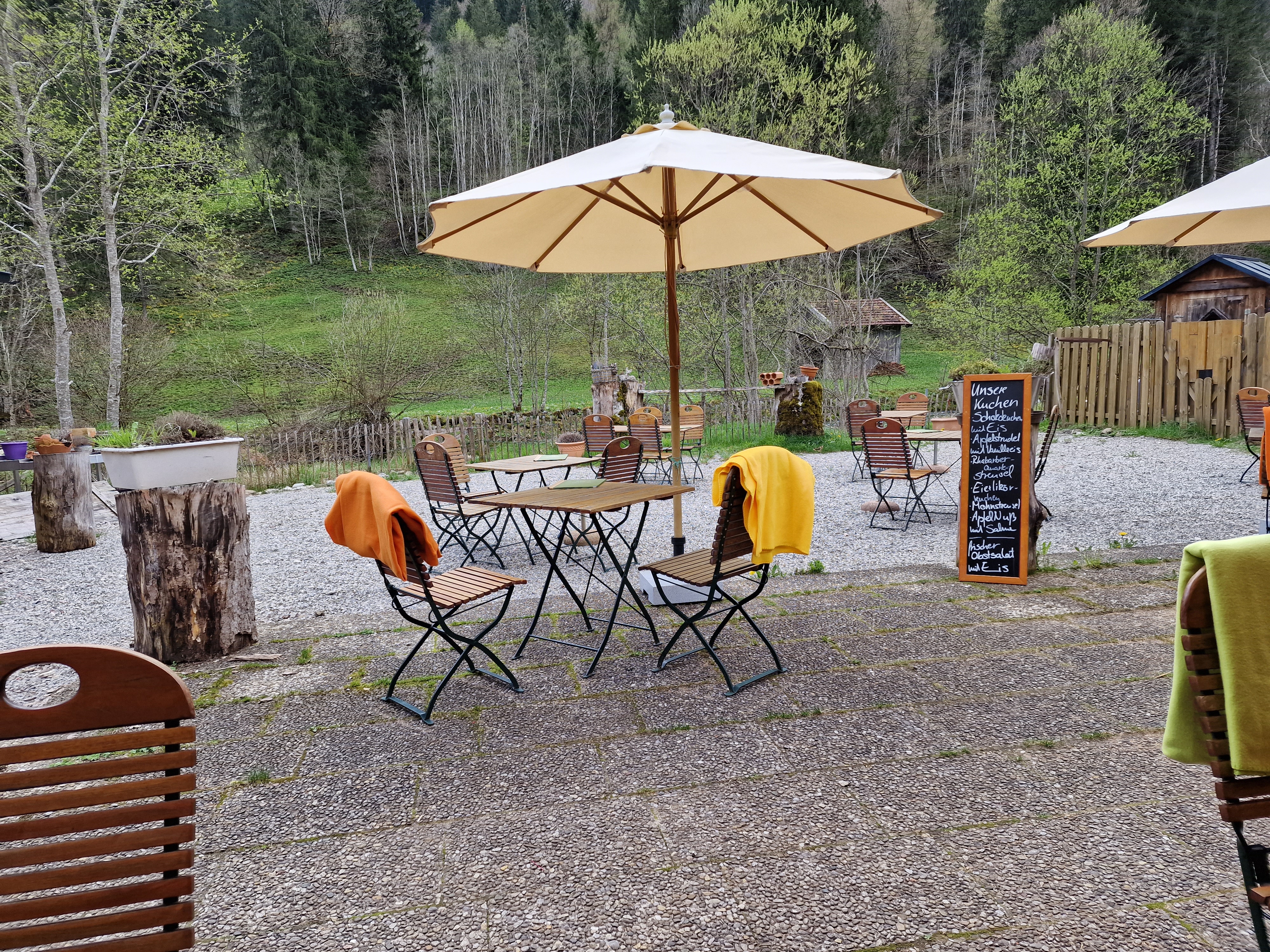 Das Vilstal lädt echt zum Radfahren ein. Entlang an saftigen Weiden mit wunderschönen Aussichten geht es vorbei an der Vils. Mal ist sie lauter und begleitet uns nah und dann entfernt sich der Weg und man kann nur ahnen wo sie gerade über die großen Steine fließt. Hier fließt sie genau am Biergarten dert Vielstalsäge vorbei. Die Vielstalsäge ist ein wunderbares Restaurant mit einer ausgefallenen Küche.