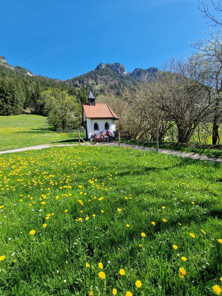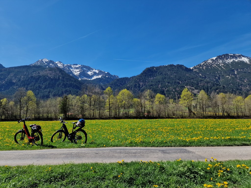 Es war schon noch ein wenig kühl. Dennoch vor so einer grandiosen Kulisse macht es einfach Spass neue Wege zu erkunden. Gut ausgebaute Radwege machen das Fahren auch für weniger geübte zu einem Fest. Freundliche Menschen gibt rs überall und die Allgäuer sind sehr hilfsbereit.