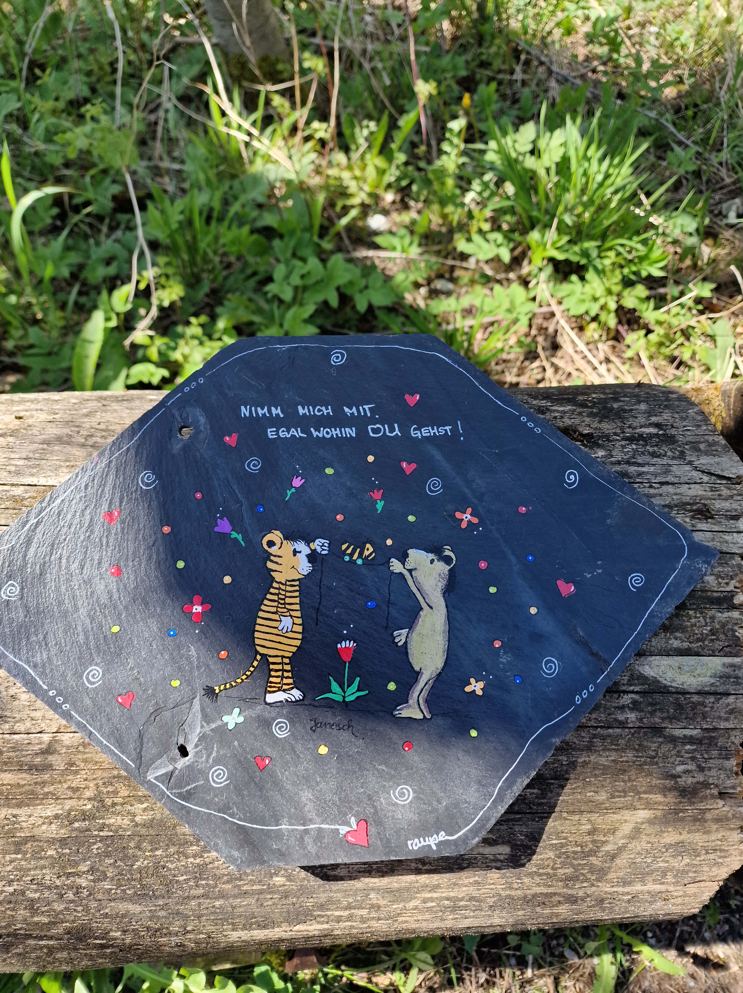 Auf dem Weg gefunden haben wir dieses kleine Kunstwerk.Als Wanderstein darf man ihn mitnehmen und so geht auch der Stein auf seine ganz eigene Reise. In Facebook kann du die Reise verfolgen. Ich habe natürlich ein Foto gemacht und gleich geposted. #Frankenstone.Schön die Antworten zu lesen. Kunst verbindet.